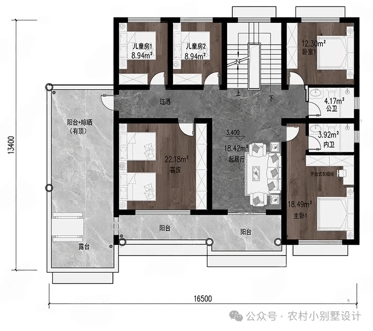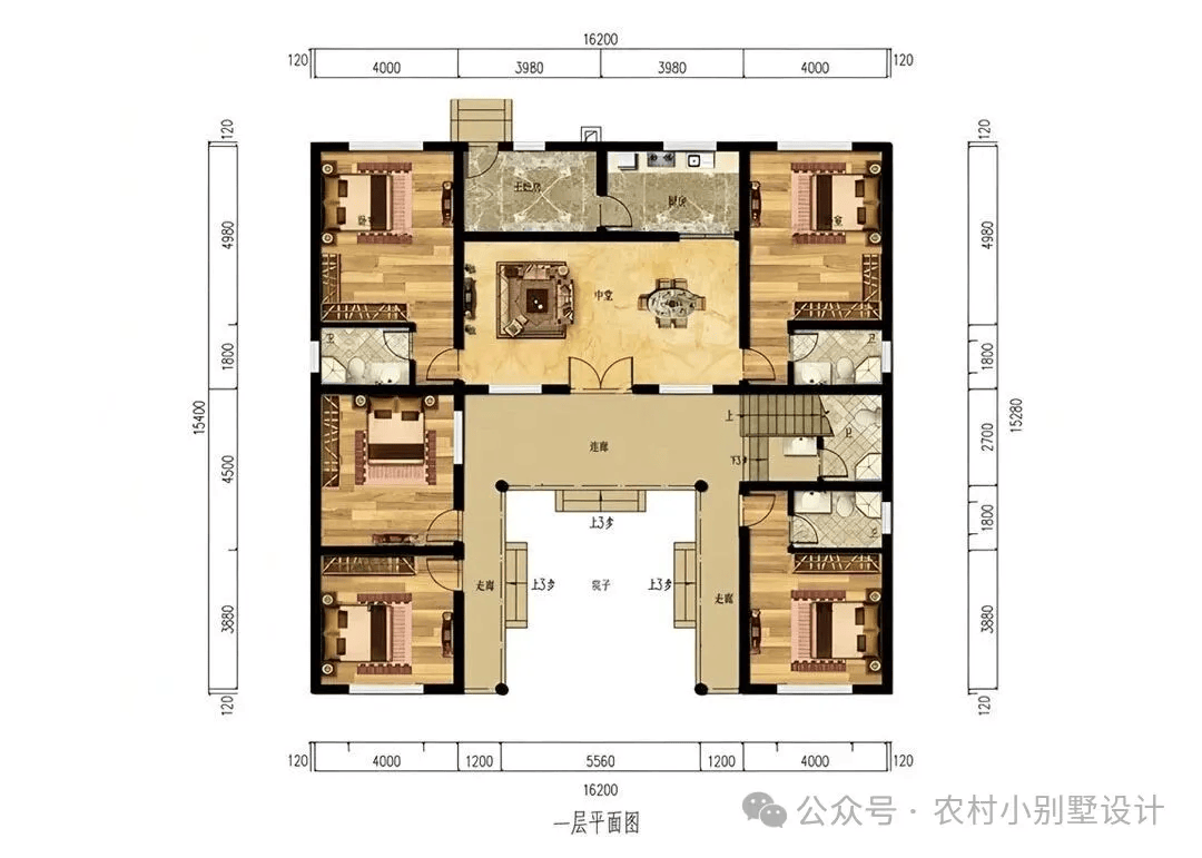 新建了两次小别墅,心里很激动,后面踏入家门的那一刻,外观挺好看的,确实迫不及待就到家里,当打开庭院的大门那一刻,好像这环境似曾相识,又好像有点不一样,原来父母为了方便居住,格局还是按照之前的格局,外墙和院子做了局部的修改,屋顶增加了钢架琉璃瓦屋顶。外观我还是能接受的,父母为了怕因为厕所问题,单独做了一间独卫,方便使用,就是不方便其余卧室,要跑到一楼来使用。中式庭院传统美开间15米进深11.8米