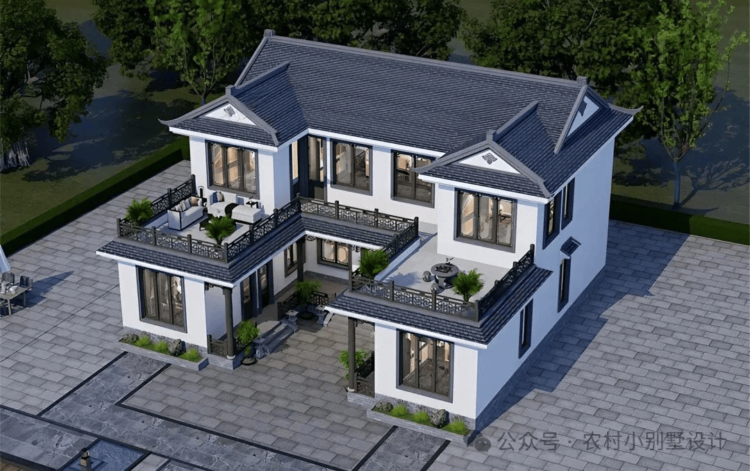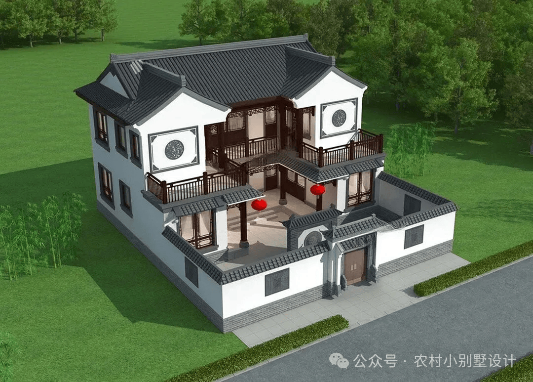 城市的霓虹追着脚步奔忙,心却在乡野的风里觅归处。当 “诗与远方” 不再是遥想,回乡建一栋新中式别墅,成了无数人的理想抉择 —— 既握得住投资潜力,又给父母稳稳的养老依靠,更圆一场枕星而眠的田园梦。眼前这栋宅邸,白墙黛瓦裁就岁月静美,飞檐翘角轻挑流云。庭院中,砖石小径藏着中式对称韵致,两侧藤椅候着晨昏,连旁侧的车,都成了 “现代” 与 “传统” 的温柔和鸣。推门将进,传统格窗漏下的光,照亮挑高厅堂的敞亮;楼上露台,又能揽尽远岫晴云。在这里,晨起听雀啼,暮落伴花眠:父母在庭院侍弄草木,孩童追着光影嬉闹。投资的远见、养老的安心、田园的浪漫,尽纳这方黛瓦白墙。归乡建房,建的何止是居所?是把 “向往的生活” 种进现实,让每寸时光都浸着烟火与诗意。新中式二层合院,这是国人的理想合院,建房的不二之选!
