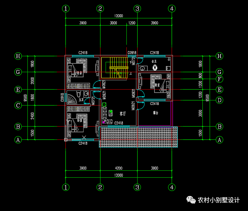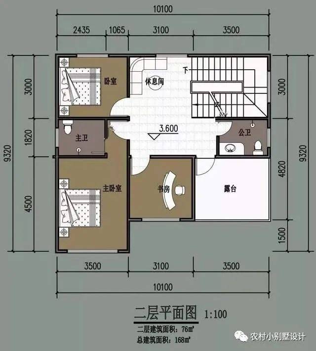 二层::2个卧室,(其中主卧带私卫) 一个书房,一起居室,一公卫,一露台